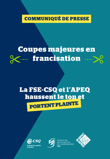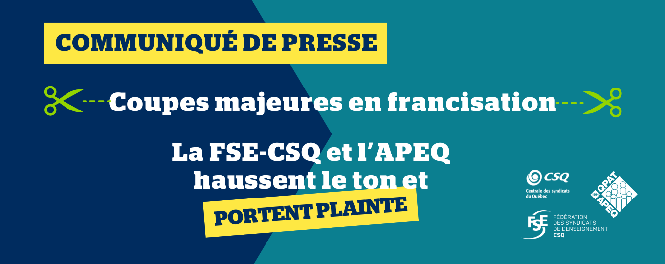 Coupes majeures en francisation – La FSE-CSQ et l’APEQ haussent le ton et portent plainte