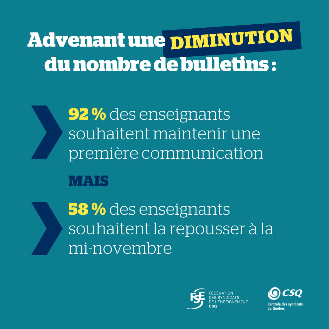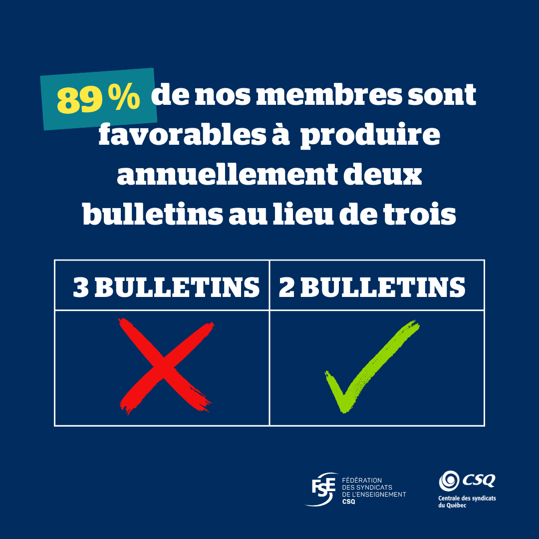 Il ressort des résultats que 89 % des 10 000 profs ayant participé à cette consultation sont en faveur d’une diminution du nombre de bulletins de 3 à 2 annuellement.