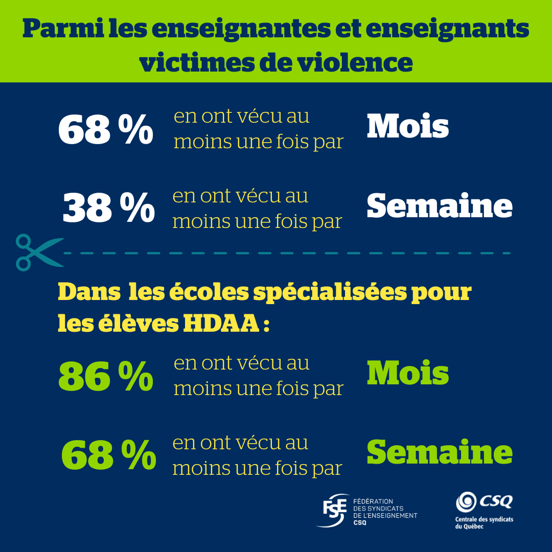 Les données recueillies illustrent l’urgence d’enrayer la situation de la violence subie dans nos établissements scolaires, surtout dans le contexte de pénurie que nous connaissons.